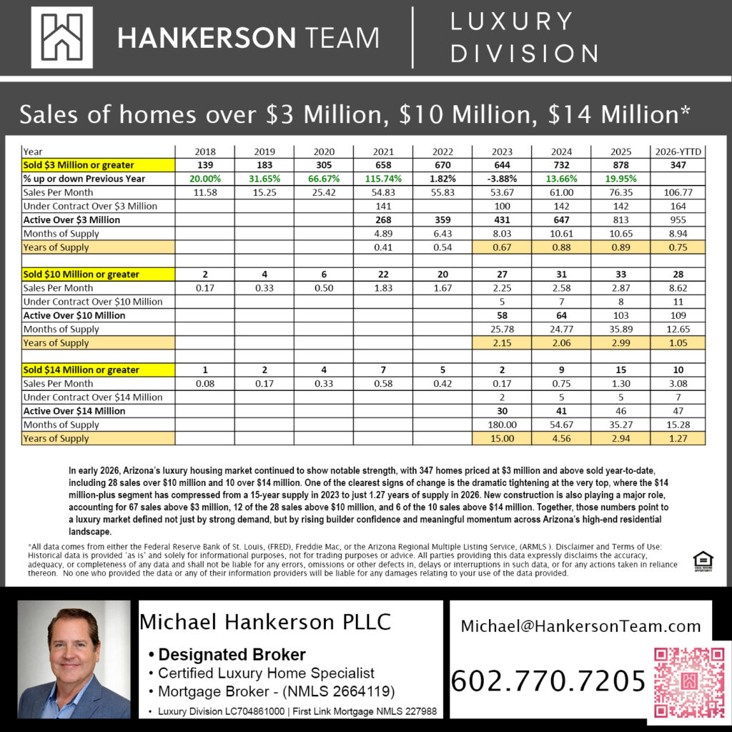 For builders and developers, early 2026 may be providing something even more valuable than momentum: validation. When new construction is accounting for such a meaningful share of closed sales above $10 million and $14 million, it suggests Arizona’s luxury market is not simply benefiting from resale scarcity. It is supporting fresh, high-basis product at the very top.